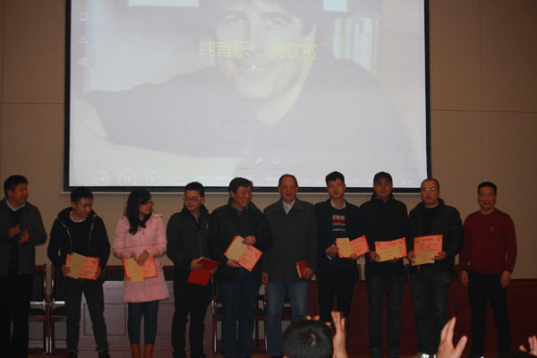 图4—2 聂久流副总为“优秀员工”颁发证书和奖金